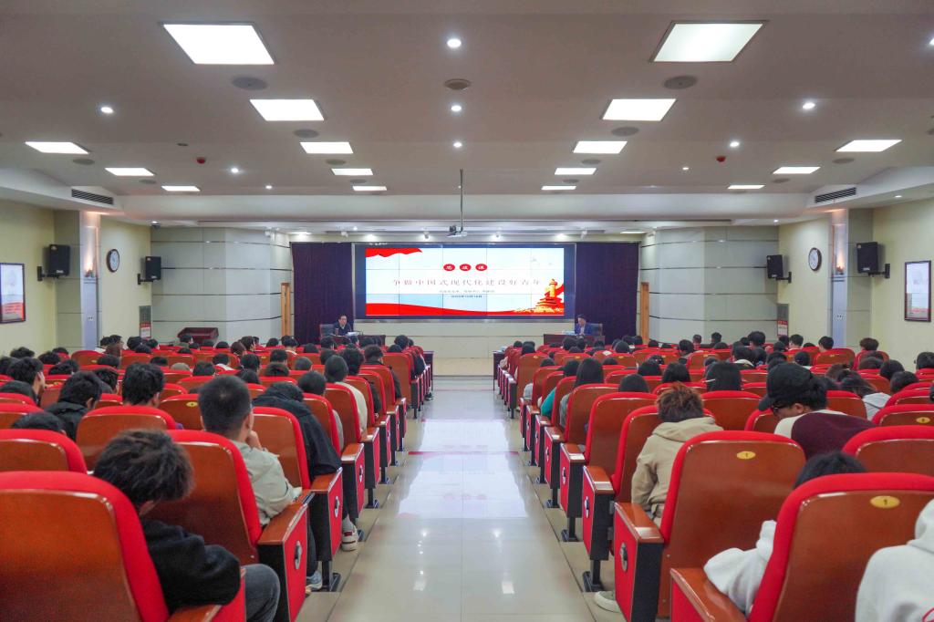 10月16日,市政协主席黄庚倜莅临我校,以“争做中国式现代化建设好青年”为题讲授思政课。校长李树伟主持,校党委常务副书记、工会主席刘翱翔,副校长张立方出席,马克思主义学院、党委宣传部、学生处、团委、博学书院负责人及师生代表近300人共同聆听。