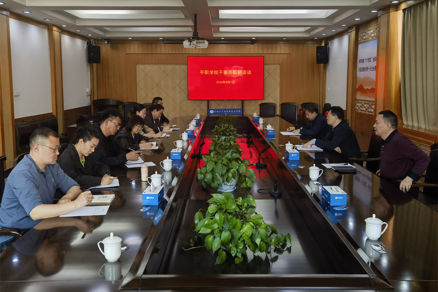 4月1日,学校在办公楼第二会议室召开新任职干部任前集体谈话会议,纪委书记杜卫新出席会议,纪委、党委组织部负责同志,新任职干部参加会议。