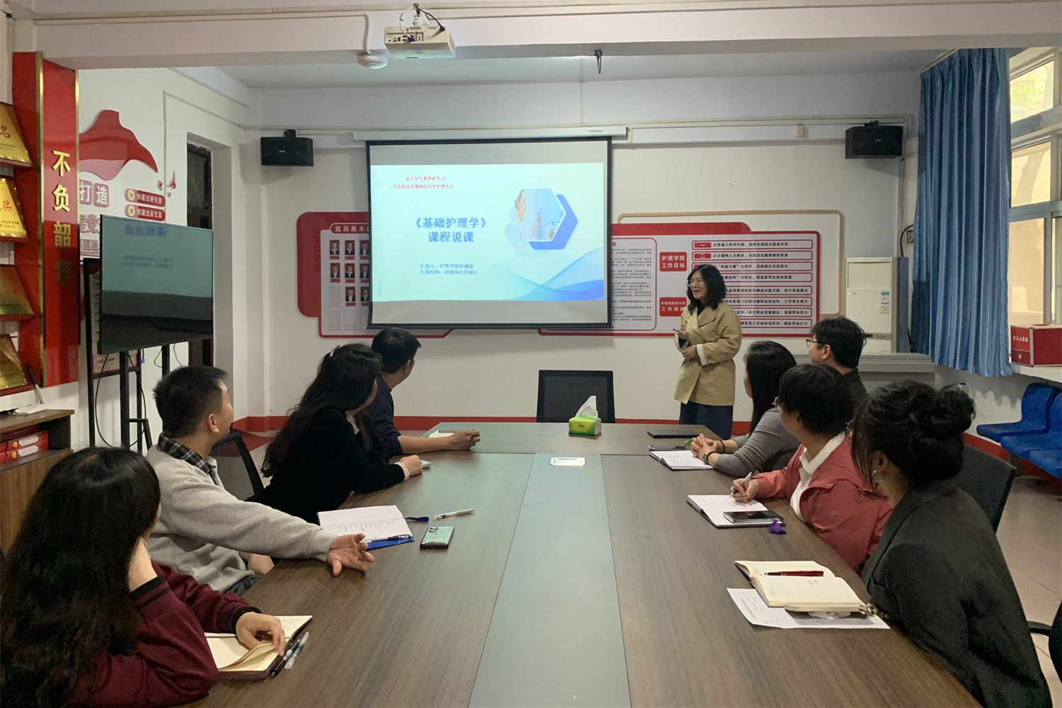 护理学院组织开展系列教研“三说”活动。活动中,护理专业、眼视光技术专业教师分别围绕专业核心课程进行说课展示。李赛蕊老师聚焦《基础护理》,从课程定位、教学目标、授课内容、学情分析及教学方法等方面展开分享,并结合临床岗位需求优化教学设计,着力筑牢学生专业基础技能;张格格老师结合行业发展趋势与岗位标准,讲解《接触镜验配技术》课程核心内容,依托案例教学、实操训练等多元模式,助力强化学生实践操作能力。说课结束后,与会教师围绕课程设计、教法创新、学情研判等内容进行了深入交流研讨。下一步,护理学院将常态化开展教研活动,持续推进“岗课赛证”育人模式落地,稳步提升教师教学能力与高素质技术技能人才培养质量。
