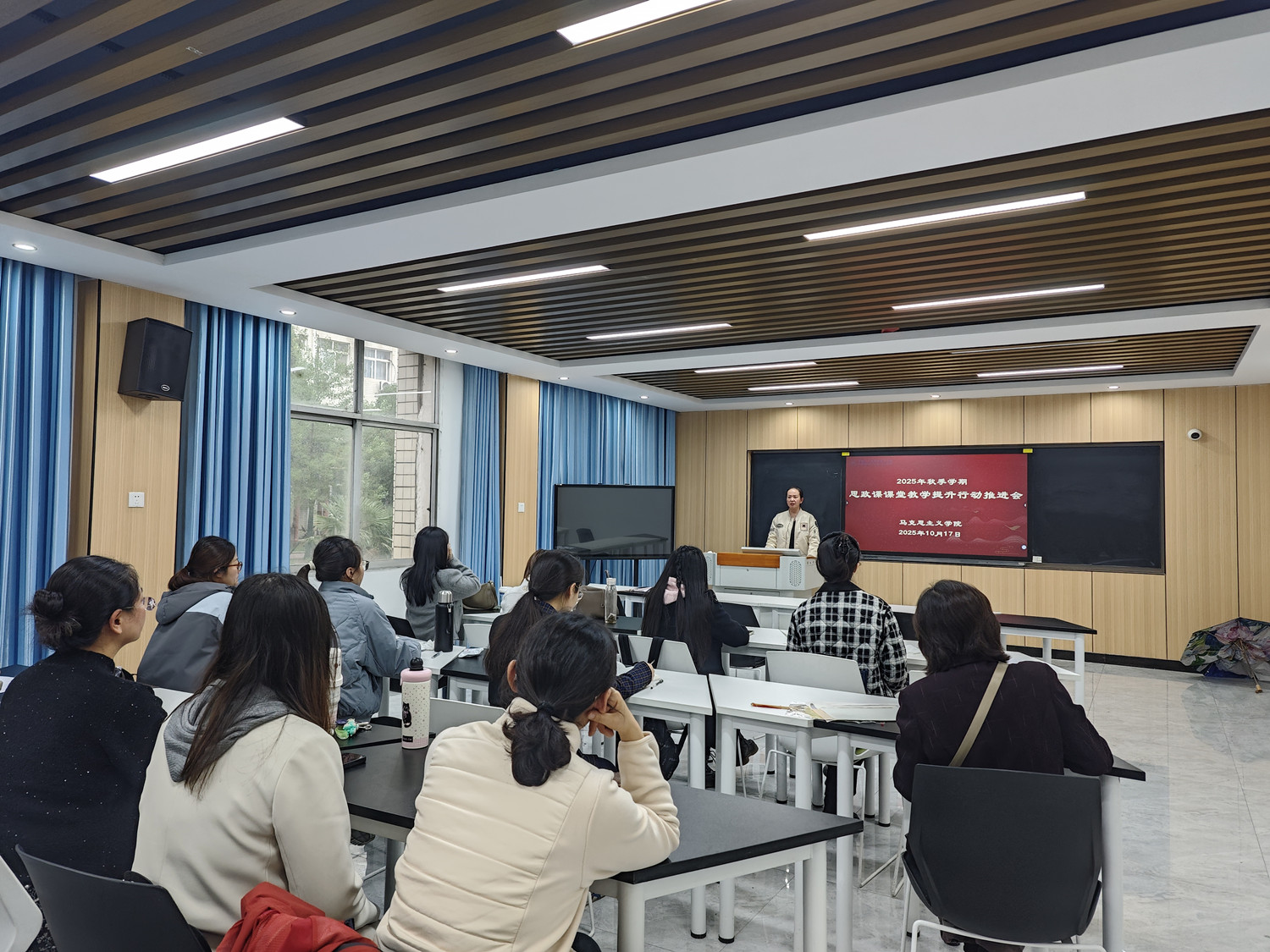 为深入贯彻落实教育部办公厅《关于开展2025-2026学年高校思政课课堂教学提升行动》通知要求,牢牢锚定立德树人根本任务,全面提高思政课教学质量与育人实效,10月17日下午,马克思主义学院召开思政课课堂教学提升行动推进会。会议由学院教学负责人主持,全体教师参加。