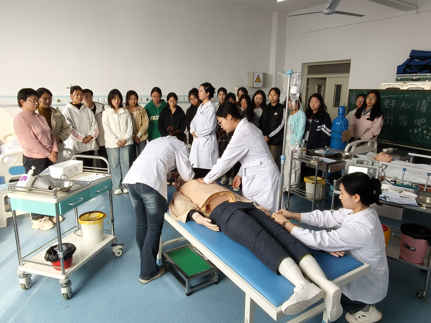 10月20日,护理学院组织2025级全体新生走进护理实训中心,现场观摩备战省级职业技能大赛学生的实训练习,近距离感受技能竞技的魅力与护理职业的风采。
