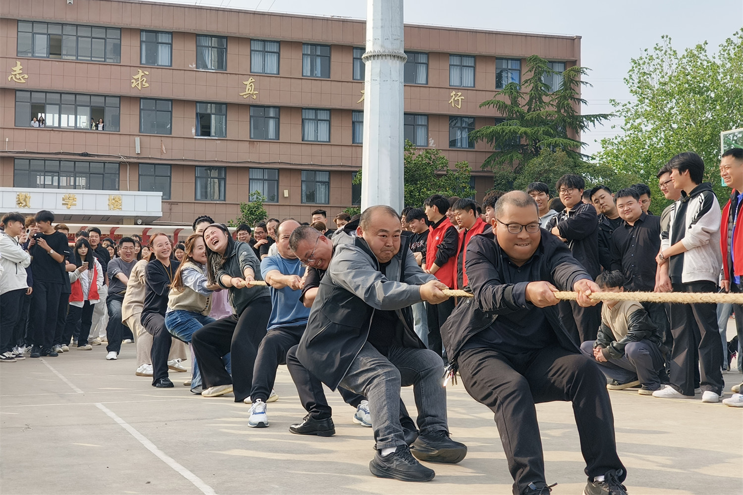 4月14日下午,技师学院在操场成功举办“健康第一·师生同行”主题拔河活动,吸引了全校众多师生踊跃参与。
